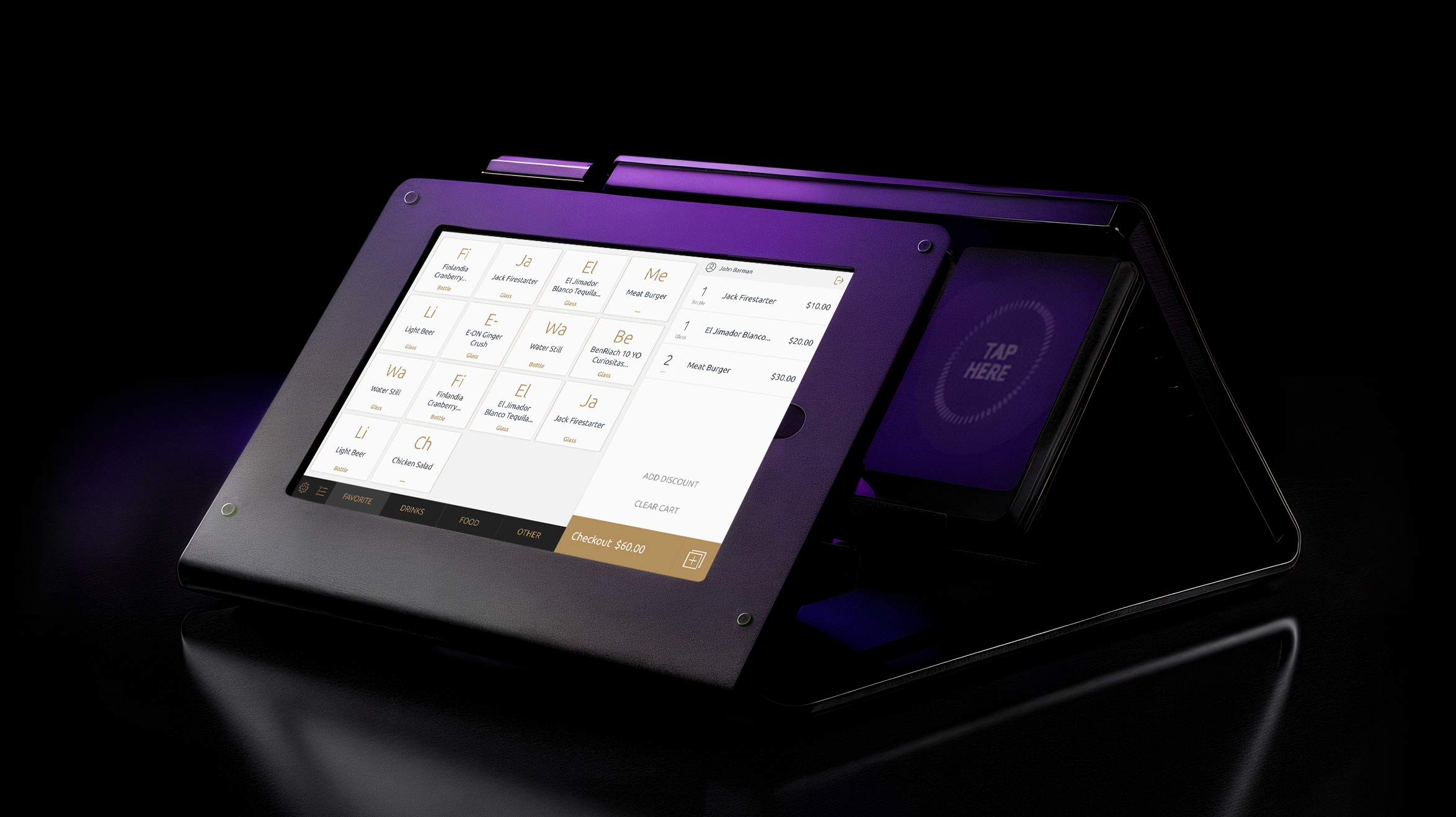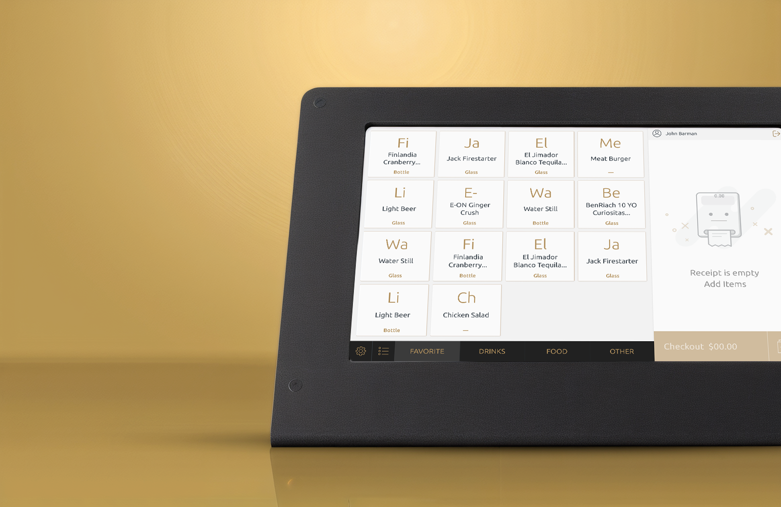 The tablet interface used by bartenders and cashiers. Designed to be ultra-fast and error-proof so staff with little training could serve hundreds of guests without slowing down.