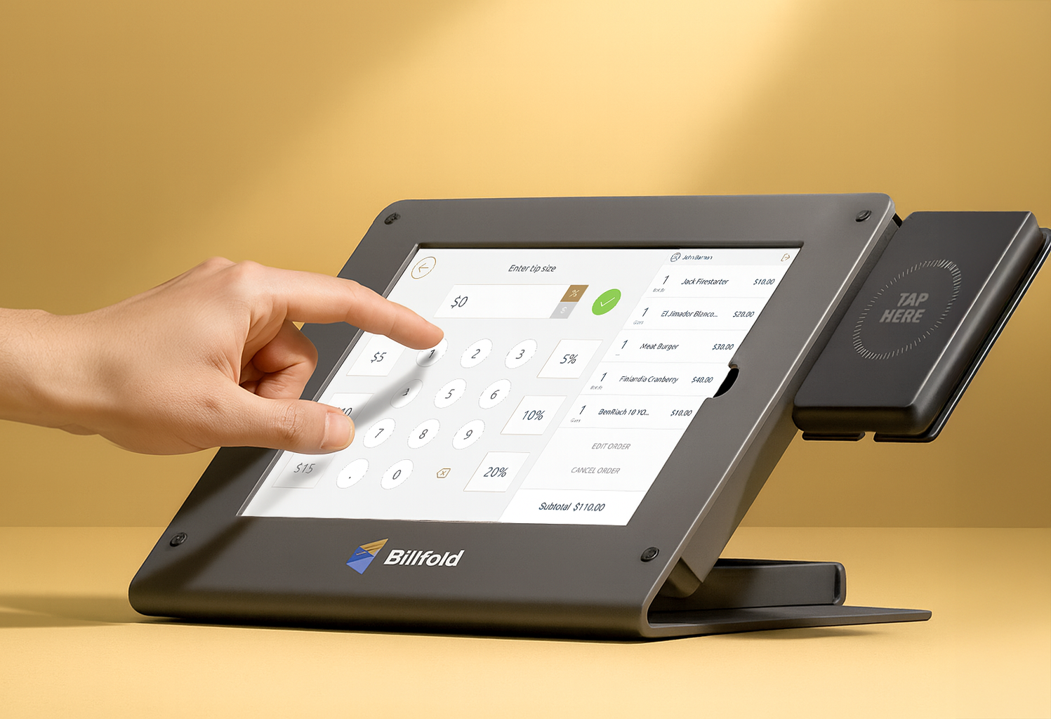 A display facing the customer that shows the order, confirms payment instantly, and reduces mistakes — giving guests confidence that every tap went through.